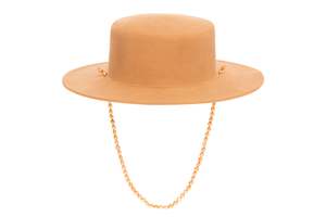 An elegant dress hat featuring a flat top with a shallow crown and a beautiful pearl string trim. Wired brim. 100% Sueded Angora One Size Inner Circumference 22.25" Brim Length 2.75" Made in New York