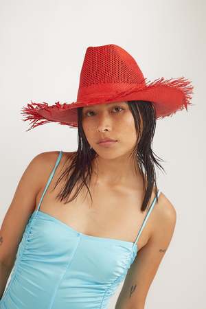 Our new Vented Western Hat w. Fringe in fine toquilla straw is a classic cowboy style updated with a fringe brim and vented crown for breathability. Features a soft elastic interior headband. 100% Toquilla Straw Inner Circumference 22.5" Crown 4.5" Brim Length 3.25" Hand woven from toquilla straw in Ecuador and blocked in New York.