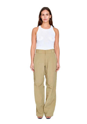 The Nylon Pants by COA NYC are made in New York City and inspired by workwear pants. Fits high or low rise depending on wearer. Elastic band in the back waistband for an easy fit. Features hook and eye closure and front metal zip, two front pockets, and 7 belt loops. Unisex style. Fit | True to size. Model is 5'3" and wears the size medium Composition | 100% Nylon Care | Machine wash cold, lay flat or hang to dry Made in USA