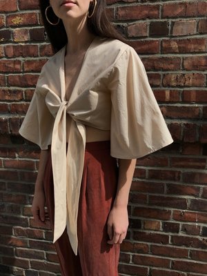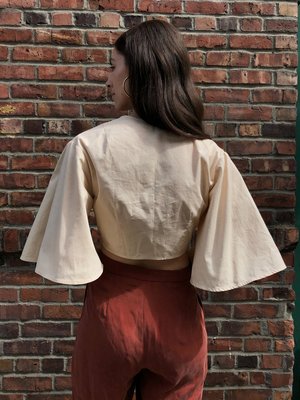 Cocobolo Ashbury Wrap Top made from 100% cotton in ivory. Ties in the front or back. Our in house line is handmade in our small studio in small quantities. Making these items takes time and effort. Please allow 4-8 weeks for production time if back ordered. FIT If you are not sure what size to choose, please contact us for help. Sizing Chart: Xsmall Bust: 31-33 inches Waist: 23-25 inches Small Bust: 33.5-35 inches Waist: 25.5-27 inches Medium Bust: 35.5-37 Waist: 27.5-29 Large Bust: 37.5-40 Waist: 29.5-32 Handmade in Tacoma, WA.