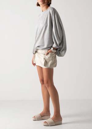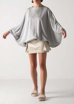 Cog The Big Smoke's Indy top is made from a lyocell material that has been specially processed to give it a soft and smooth touch with a supple bounce. The Indy Top features a silhouette like a gingko leaf, tucks placed under the back cuffs that create a unique volume at the back, and a wide neck opening. Measures approximately: Body length: 71.5cm (front) / 80cm (back) Body width: 132cm Sleeve length: 62cm (from side neck point to sleeve) 100% Recycled fibre (cellulose) Made in Japan.