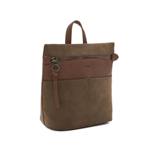 + COLOR : BLACK / BARK(BROWN) + Suede and pebble faux leather + Top main zipper opening with ring tassel puller + Front slip pocket + Adjustable backpack strap + Inside zip pocket and compartment 9.75 x 10 x 5.25"