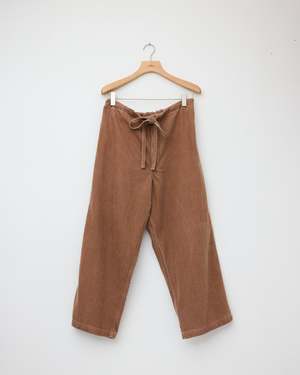 Wide leg pants in sienna with a drawstring adjustable waist and button fly. Made in USA. Details - Button fly - Cobrax buttons Fabric 100% Linen