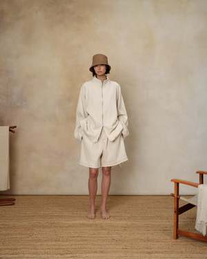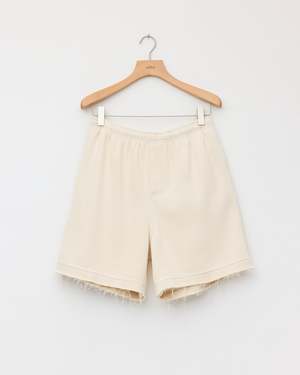 Elasticated waist shorts in natural cotton. Made in Romania. Fabric 100% Cotton