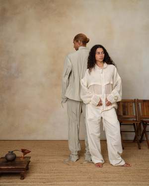 A full-zip jacket in natural with kangaroo pouch pockets, elasticated cinched wrists, and a drawstring-adjustable hem. Details - Drawstring-adjustable hem - Riri zipper - Kangaroo pouch pockets Fabric 100% Cotton Made in Bulgaria.