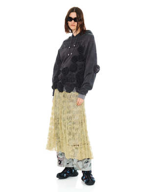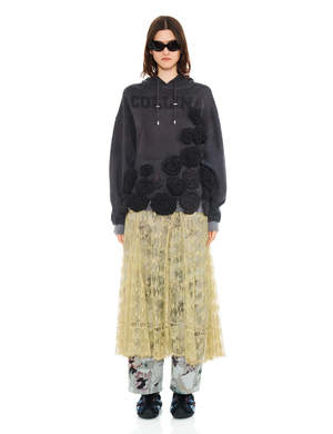 Oversized hoodie with textured flowers on the waist and Collina graphic at center. One to live in this season and beyond! Details: - By Collina Strada - 100% deadstock cotton - This is a hand-dyed garment; there may be slight variations. - Made in Portugal, finished in New York Oversized fit - Model wears XLarge