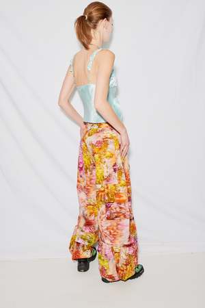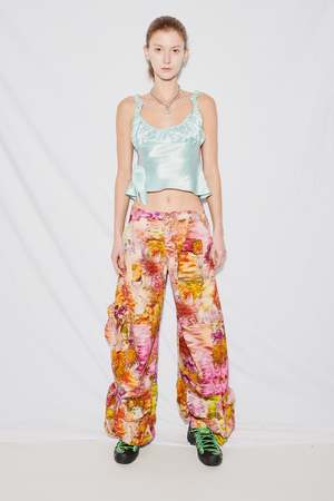 Chrysanthemum Denim Garden Cargo Pant from Collina Strada. Mid rise, wide leg cargo pant with large pockets all over, Fly front, and D ring on back. - 100% Cotton - Made in New York - Jules is 5'10 and wears a size 2, shown in size S