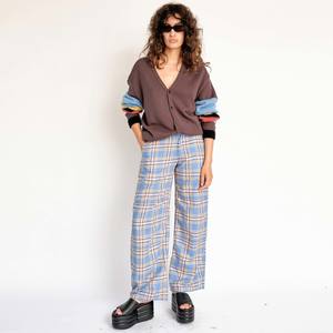 Relaxed fit with mid rise, wide leg pant. Made in New York. Deadstock Flannel 100% cotton. 2019 CFDA / Vogue Fashion Fund Finalist and inaugural member of Gucci's experimental concept space Gucci Vault, Collina Strada is known for pushing the envelope in terms of avant-garde design and sustainability while maintaining a strongly accessible price point. Wild prints, tie dye, lace and the use of deadstock fabrics are a cornerstone for one of our favorite brands on earth.