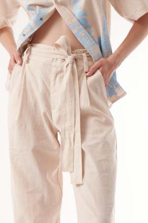 The Lin Pants are a perfect spring wardrobe staple. They are made entirely from 100% linen (European flax certified) and have a relaxed fit. They are breathable, making them an excellent choice for casual days or stylish evenings. Proudly made in Barcelona.