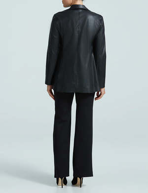 Commando's Faux Leather Double-Breasted Blazer is made from our fan-favorite faux leather and designed with an oversized fit. Pair with our Neoprene CEO 7/8 Trouser for an easy work outfit or one of our slips for an effortlessly chic look.