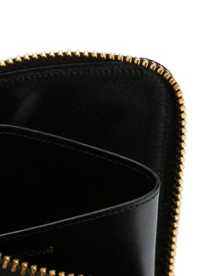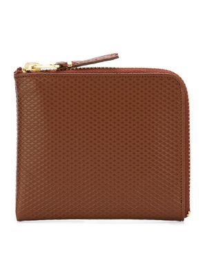 LEATHER LUXURY GROUP PURSE FROM COMME DES GARONS WALLET IN BROWN OR BLACK, FEATURING A GOLD-TONE TOP ZIP FASTENING AND A COIN POCKET. MEASUREMENTS: 4.3" L X 3.5" W X .4" D 100% LEATHER MADE IN SPAIN
