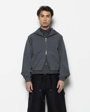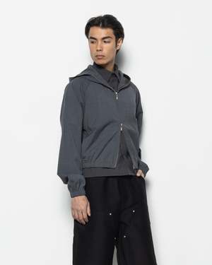 The Niva Jacket is a light, raglan-cut jacket made from a wool-blend construction. This charcoal-grey jacket is crafted with an attached hood, finishing with a two-way zip and elastic hem. - 70% Polyester, 30% Wool. - Machine wash cold, line dry. - Made in China. Quentin is 5'10" (178cm) and is wearing a size 2.