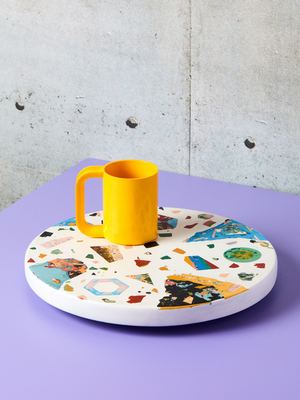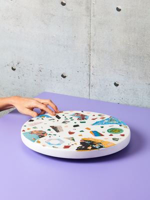 The perfect lazy susan! It can also live on any table surface as a unique and effortless accent. Unique color way and pattern that features multicolor flecks of pigment. 1.75" H x 14" DIA *Photos are representative of color-way / pattern however each piece is cast uniquely so you may receive an item that slightly varies.* -- NOTES-- We admired Concrete Cat's designs for a long time and are happy to say we now call them friends. It's impossible for us to pick one of these since we always want them all! We've gifted many of these to our closest friends.