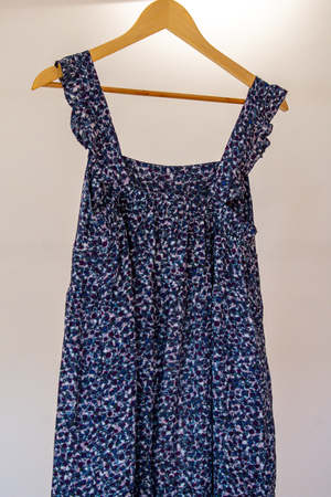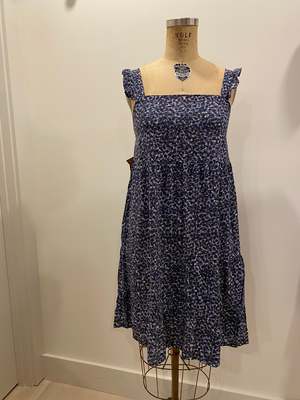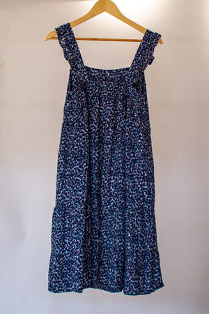 A ready-to-wear, ultra summer chic tiered dress. Made from crinkled cotton, this is a unique take on a boho dress. Machine washable. Hang to dry. Low iron.