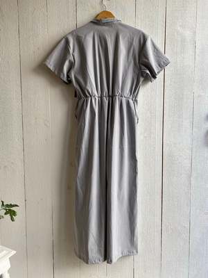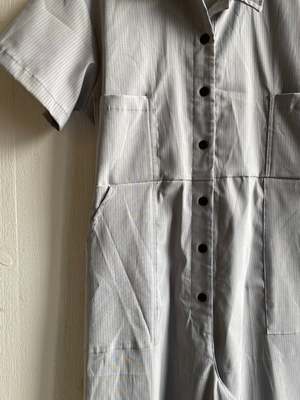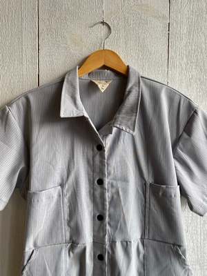 Utility style jumpsuit, with collared top, button down front closure. Deep top and bottom patch style pockets, wide legged, elastic are back. CONRADO sources our fabrics through our travels. We mostly source them from local, family-owned businesses that specializes in deadstock, run-off and second-hand fabrics. We do this to support local economies and to cut down on waste. As a result, we sometimes cannot provide the exact fiber contents of the fabrics we purchase. When we have the information, we disclose fabric content. CONRADO shall not be liable to you for any damages that result from the use of the materials. You use CONRADO products at your own risk. We do our best to provide care instruction that we believe is best for the material. We only strive to find and provide in a responsible and environmentally friendly manner quality fabrics. Thank you for supporting our small business.