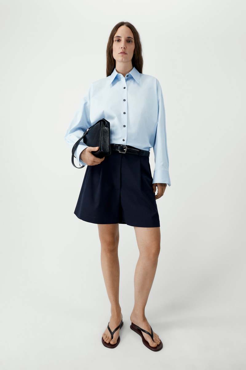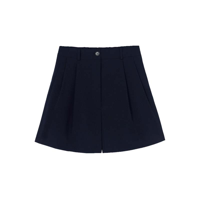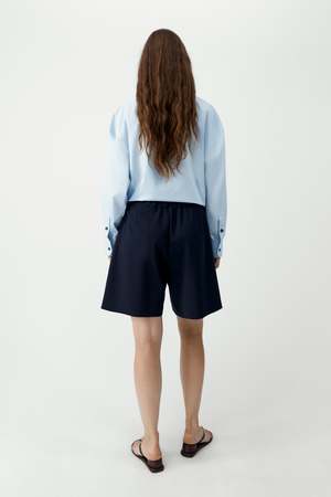 These tailored bermuda shorts feature a classic fit with a double pleat front and a length that sits just above the knee. Designed with belt loops and jetted side pockets, they offer a clean, streamlined look without back pockets. The elasticated waistband at the back ensures comfort, while the front button closure adds a polished finish. A versatile piece that blends modern tailoring with effortless ease. Made by Cordera in Spain. CONTENT & CARE: 52% Polyester, 43% Wool, 5% Elastane. Oeko-Tex Standard 100.