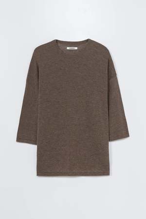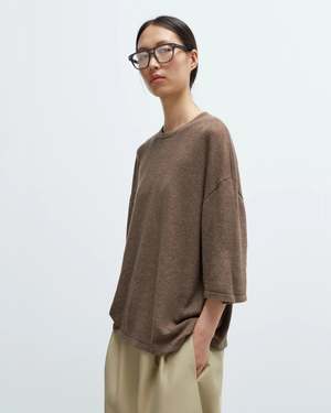 This oversized t-shirt is crafted from extrafine merino wool. It features a relaxed silhouette with dropped shoulders and 3/4 sleeves, finished with a classic crewneck. Light and effortlessly comfortable, it's perfect for everyday wear. 100% Extrafine Merino Wool One size, best fit 36eu to 42eu. Measurements taken flat: Shoulder 23" / Bust 23" / Bottom hem 23" / Length 25" / Sleeve 20" Dry clean only. This t-shirt is ethically and carefully manufactured in La Corua, Spain with Japanese knitting machines and finished by hand. Cordera cares about the environment, using recycled yarns with certified traceability and a low environmental impact production cycle.