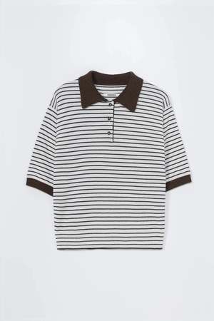 This Merino wool striped polo from Cordera is a sophisticated take on a classic favorite. The striking black and white stripe pattern is complemented by warm brown detailing along the collar and cuffs, creating visual interest that feels both polished and approachable. Crafted with a comfortable regular fit and elbow-length sleeves, it transitions seamlessly between seasons and occasions. The three-button placket and ribbed finishes deliver a refined structure that keeps you looking put-together. Whether layered or worn solo, this versatile piece becomes an easy go-to for intentional style. - 100% extrafine Merino wool - One size; fits approximately EU size 34 to EU size 42 - Dry clean - Made in Spain This polo is ethically and carefully manufactured in La Corua, using Japanese knitting machines and finished by hand. The brand focuses on environmental responsibility, using recycled yarns with certified traceability and a low environmental impact production cycle.
