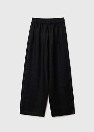 Relaxed and comfortable pants that feel loose on the body. They feature a straight leg silhouette with lace details and contrasting white stitching on the sides, as well as faux pockets on the back. Made from high-quality linen, these pants keep you comfortable and stylish at the same time. Ethically and carefully manufactured in Galicia (Spain), they are made of high-quality fabric. We care about the future of our planet using the latest technology in the most sustainable ways: reducing water usage, plastic, and no toxic waste. - Made in Spain. - Fabric: 100% Linen. - Care Instructions: Handwash, do not bleach, do not tumble dry, iron on low heat, dry clean. - ONE SIZE. Size range runs as 34 EU size to 42 EU size. - Model is 1.77 cm tall and is wearing One Size. Measurements: - Waist: 64 - 92 cm (25 - 36 inches) - Length: 101 cm (40 inches) - Hips: 56 - 60 cm (22 - 24 inches) - Rise: 32 cm (13 inches) - Inseam: 73 cm (29 inches)