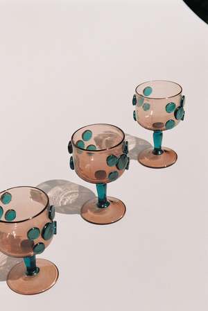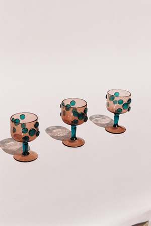 Rare set of two rare handblown wine glasses, handblown in northern California. Circa 1950s. Taupe/Teal.