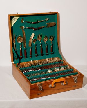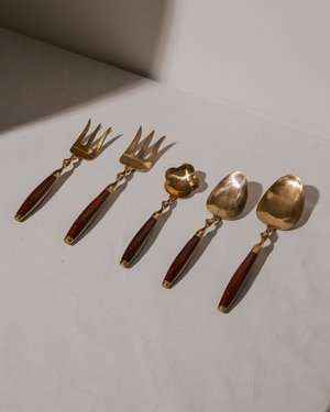 Complete Chest of Extinct Rosewood Brass Flatware circa 1970s.