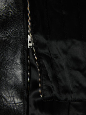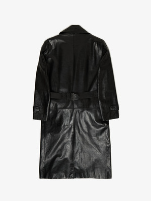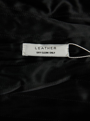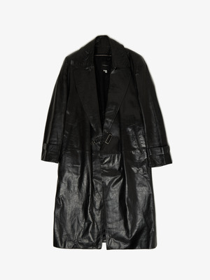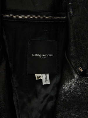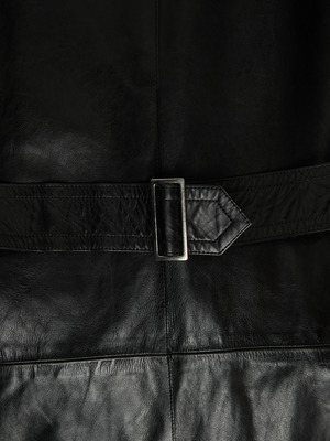 Description:Black Elongated Leather Coat;Condition:Costume National;