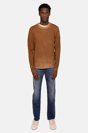 - Color: Vintage Clay - Soft jersey fabric - Contrasting dyes - Slub finish - Side vents - 100% Cotton - Made in USA