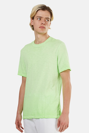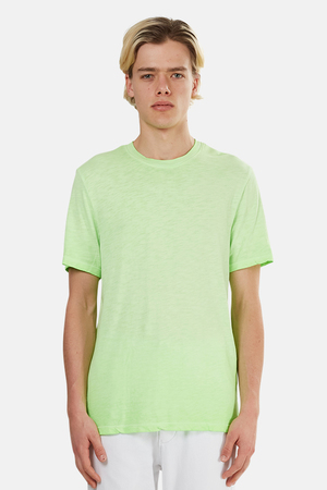 - Color: Electric Lime - Soft jersey fabric - Contrasting dyes - Slub finish - Side vents - 100% Cotton - Made in USA - Style #: M605455 - Machine wash cold * Model is 6'1 wearing size M | Men's Cotton Citizen Presley T-Shirt in Lime, Size Small