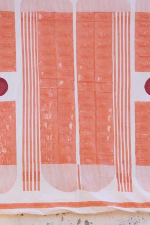 This reversible duvet cover features two unique hand-block printed designs, inspired by the geometric simplicity and bold colors of the Bauhaus Art movement. One side showcases a striking black and white lunar pattern, while the reverse side offers a modern orange design with deep red accents. Each duvet cover is handmade, requiring attention from multiple artisans, including wood-block carvers, printers, and dye specialists. The design is hand-pressed onto each duvet using hand-carved wooden blocks dipped in dyes. Our duvet covers are made in small batches. Due to the handcrafted nature of this item, expect slight variations in the appearance of each unique piece. - 100% Cotton - Button Closure - Reversible Design - Handmade in India - Queen Size: 92 x 96 | King Size: 96 x 104 | Shams Size: 26" x 26" - Machine wash on a gentle cycle and tumble dry or dry clean