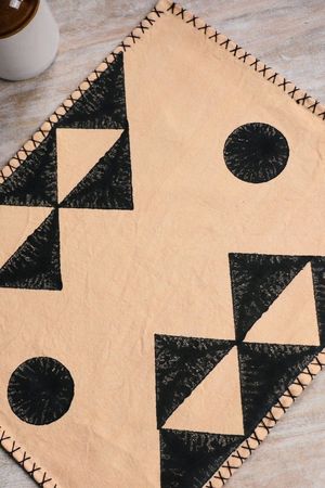 The Sedona (Reverse) Placemat Set, inspired by the monumental sculptures of Eduardo Chillida, brings a piece of abstract art to your table with its striking black designs on an almond cream base. Each placemat is handmade, requiring attention from four types of artisans, including wood carvers, block printers, Kantha stitchers, and dye specialists. The table mat's design is hand-pressed onto cotton using hand-carved wooden blocks dipped in dyes. The printed canvas is then hand-stitched with a traditional Kantha stitch, creating the final product. Crafted in small, thoughtful batches, our placemats celebrate uniqueness, with each piece showcasing slight variations that highlight its handcrafted nature. This collectsion is not only an homage to traditional art forms but also an invitation to infuse your dining moments with the richness of cultural craftsmanship: - 100% Cotton - Size: 13" x 18" - Set of 4 or 6 with matching napkins - Machine wash on a gentle cycle with cold water and lay flat to dry - Handmade in India - Designed in and ships from California