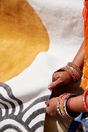 Each rug is handmade, requiring attention from 4 artisans, including wood carvers, block printers, weavers, and dye specialists. The design is hand-pressed onto each rug using hand-carved wooden blocks dipped in dyes. All rugs are made in small batches. Due to the handcrafted nature of this item, expect slight variations in the appearance of each unique piece. - 100% Cotton - Made in India - Ships from California