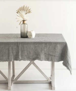 In a quiet village in southwest India, our linen is meticulously woven, dyed, and stone washed to perfection. Each piece is made from the finest imported Belgian flax and represents hours of artisan work. This versatile piece is a generously sized 84 x 60 inches and doubles perfectly as a tablecloth or a lightweight throw. Frayed edges add texture to the classic and timeless stone washed finish.