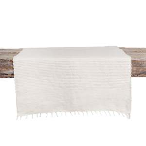 Hand-spun cotton, delicate ribbed accents, and tasseled ends give a rich depth of texture to this neutral yet elegant table runner. Ethically made in Ethiopia from 100% locally sourced cotton.
