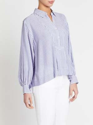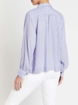 Cruise through the weekend in The Emmy Blouse in Summer Stripe by Current Elliott. Crafter from super soft rayon this over sized blouse features a lightweight stripe, a classic collar and is finished with cuffed sleeves. This beautful blouse is made to swing a little. Throw it on over skinny denim for that dream combo of loose and fitted, structured and flow. ---- FABRIC OR COMPOSITION The Emmy Blouse in Summer Stripes is made from 100% Rayon SIZE AND FIT The Emmy Blouse in Summer Stripes from Current/Elliott fits true to size. Neck Drop: 8cm / 3inch Sleeve Length: 58cm / 23inch Back Length: 62cm / 24.5inch Measurements taken from a size 1 Model is wearing a size 1. Allison is 178cm / 5' 8" Bust 81cm / 31.8in /// Waist 58cm / 22.8in /// Hips 84cm / 33in