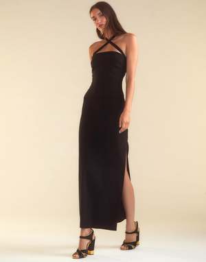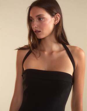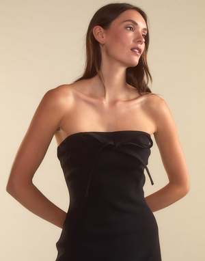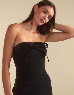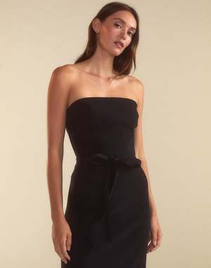 Strapless satin mini dress - Satin finish - Maxi length - Concealed back zipper - Removable tie for versatile styling - Strapless - Straight hem - Side slit - Fabric content: 100% polyester - Care instructions: dry clean recommended Fit: model is 5'9" and wears a size 2. Size 2 length measurements: 48''
