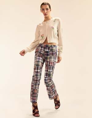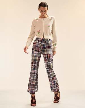 Pretty floral embroidered baby cashmere cardigan. Cute enough to wear solo, but also perfect for layering. A year-round go-to when youre looking for a hint of girly style. Spring/Summer 25' Composition: 70% Wool, 30% Cashmere Hand wash, hang to dry Fit: Model is 59 and wears a size S Size S Measurements: - Length: 19"
