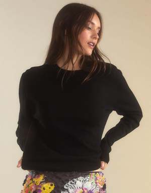 Staple black wool and cashmere crewneck sweater - Classic crewneck - Ribbed neckline, cuffs and hem - Soft wool cashmere blend - Lightweight knit for all seasons - Fabric content: 70% wool, 30% cashmere - Care instructions: hand wash, hang to dry Fit: model is 5'9" and wears a size S.