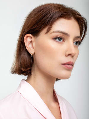14K yellow gold. Gold weight: 1.25 g. 0.21ct diamond pav. Sold as a pair.