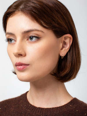 These huggie hoops are crafted from 14K yellow gold with a total gold weight of 0.9 g. Sold as a pair.
