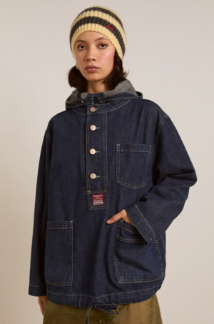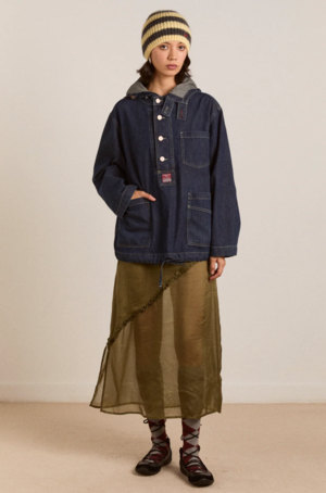 Effortlessly laid back with elevated detailing, this oversized smock-style hoodie is crafted from soft, fluid denim made from 100% organic cotton. Designed with a relaxed silhouette, it features a front shank fastening, contrast stitching, and adjustable cuffs for a custom feel. Functional touches include a front pocket, drawstring hem, and a signature DM branded patch. Oversized denim smock hooded top Front shank fastening Contrast stitch detail Soft fluid denim Adjustable cuffs Front pocket detail DM branded patch Drawstring hem detail 100% organic cotton Made in Turkiye Designed in London MODEL INFO: Model is 5'10" and is wearing a UK 8. CARE: Cotton thrives when washed at cool temperatures, ideally up to 30 degrees, which refreshes your garments while being kind to the environment. Higher temperatures may cause shrinkage, so a gentler approach preserves the fabric's quality. If cotton feels stiff after washing, simply wearing it will soften the fibres and allow them to mould to your body. For tough stains, pre-soak in a 50% water and 50% vinegar solution for a natural, chemical-free clean. Alternatively, use a mild stain remover, always testing it on a discreet area first.