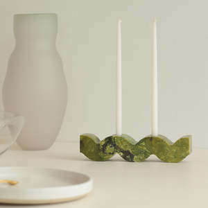 Elevate your space with the Wavy Candelabra: a reversible, sculptural centerpiece made from real semi-precious gemstones. A timeless gift for design lovers or an elegant addition to your home dcor this holiday season.