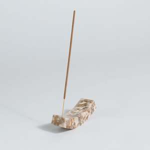 Create a peaceful corner: soapstone design for your zen moment. Details Dimension: 4.25 x 1.25 x 1.5 in Weight: 0.5 lb Material: Serpentine / Onyx / Soapstone Stone Green Serpentine is a unique stone formed of crystal-like minerals, ranging from lime green to deep pineno two stones are exactly alike. This stone is said to stimulate the digestive and glandular system, and acts as a shield to counteract aggressions and invasive vibrations. Creamy Soapstone varies from pink to turquoise to yellow tones, depending on the mineral composition. It is valued for helping one prepare for change, promoting rational and creative thinking. Solid Black Onyx is sourced from the Arequipan Andes of Per. Its subtle veining makes every piece one of a kind. Long tied to the root chakra, it is said to ground energy, clear negativity, and foster resilience while easing tension. Metaphysically, it is believed to support bones, skin, circulation, and birth. Story Create a sacred space with this slow rocking of the curved incense holder, handcarved with stone carpentry techniques traditional to Per and certified ethically hand-crafted by NEST. The curved shape adds a touch of weighted elegance both when in use and as a playful element when on display.