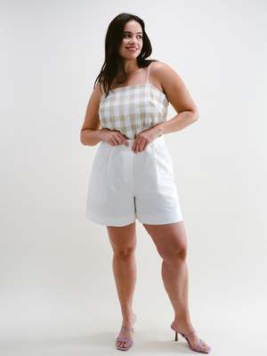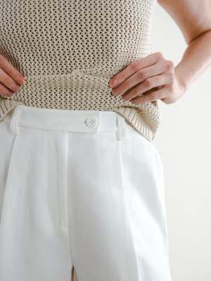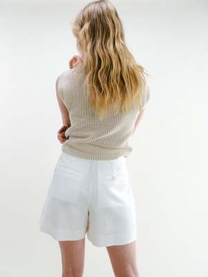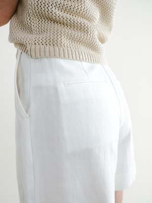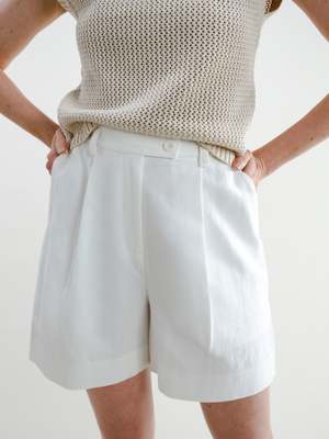 A complimentary piece to our Fauna Blazer, these shorts simply say: classic and clean. They are those basic white shorts youve been looking forthe ones youll wear to the park one day with a tee, and then the next day to a fancy event. The silhouette is flattering, and the length works for truly any occasion. Made of structured, yet soft linen, they also have adjustable buttons inside the waistband for your unique waistline. These are a go-to for years to come, reminding you that time is on your side.