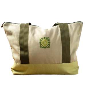 The Rahaf Travel Bag is handmade by women artisans in the West Bank. It features a zipper closure at the top for extra security, making it ideal for carrying clothes, personal belongings, or other essentials while traveling. The travel bag is designed for convenience and practicality, keeping belongings organized, secure, and easily accessible. Product Details: - Locally sourced cotton-blend fabric.