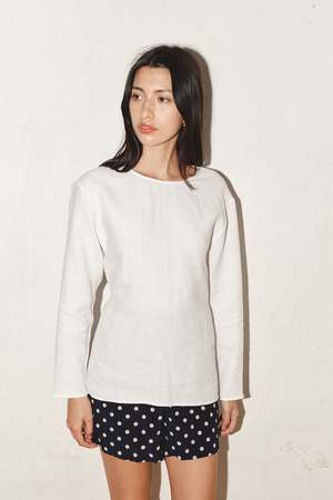- Long fit. Tuck in or leave out - Adjustable long silk band on side seams to tie front or back and create different styles-volume. - French seaming - Colour: White - One size fits all S/M/L - 100% Organic Linen MADE IN SPAIN
