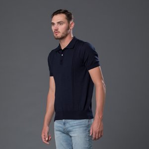 DAVID HART creates timeless luxury menswear, a prime example is his Navy Cable Knit Polo for Fall. Spun with ultrafine Italian Merino wool, the soft cable knit detailing accents the luxurious drape of the fabric. This staple piece can be dressed up in a suit or blazer, or with more subtle styling like a modern pair of trousers or jeans. Worn with the KRAMMER & STOUDT Brighton Trouser. - 100% Extra-Fine Navy Merino Wool - Cable Knit at Front, Pearl Buttons - Dry Clean Only - Fits True to Size - Model measures: Height 5'11.5"/155cm, chest 38"/96cm, waist 31"/78cm, inseam 31"/78cm - Model wears a Medium - Made In Italy