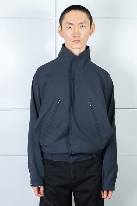 Crafted from a Japanese-imported blended fabric combining structure and texture. The shell features a balanced mix of polyester, cotton, and linen, delivering a refined surface with subtle depth. Fully lined with soft rayon for exceptional comfort. Designed with raglan sleeves that create a clean, sculpted silhouette. The ribbed hem provides shape and structure. Two additional diagonal zip pockets are placed below the chest, enhancing both practicality and visual layering. The collar can be worn upright for a sharper, more defined look. Composition: Shell: 79% Polyester / 15% Cotton / 6% Linen Lining: 100% Rayon Made in Korea. Model is 183 cm / 71 kg, wearing size 2. Size 2: Chest 64 cm, Length 65 cm. Measurements are in cm.
