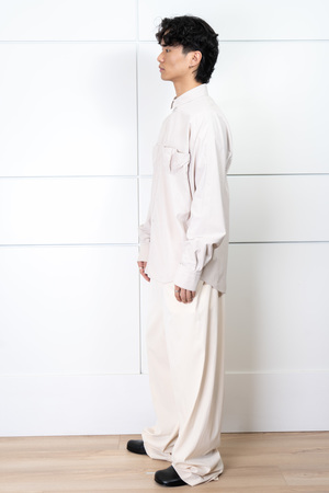 The Mari Shirt by ddailies is crafted from 100% high-quality nylon, offering a soft hand feel and exceptional comfort. The silhouette is slightly relaxed, yet carefully tailored to maintain a close, structured fit. Designed with snap-button closures and double-layer, exposed three-dimensional chest pockets. The sleeves and upper back feature layered panel construction, adding volume and enhancing the natural curve from the side. Subtle back pleats further elevate the dimensional structure. The shirt features a high-low hem design. Composition: 100% Nylon Made in Korea Model is 5'11" / 160 lbs. This item comes in one size and fits SL. Size: One Size Chest: 71 cm ShoulderSleeve: 68 cm Front Length: 72 cm Back Length: 82 cm Measurements are in cm.