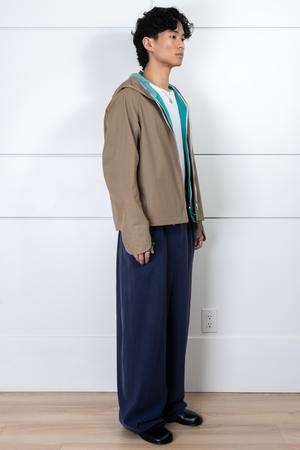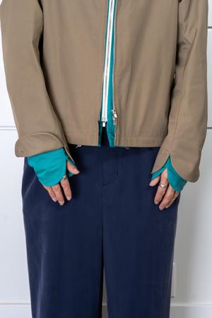 A two-layer jacket designed for modular wear. The outer shell and inner layer can be separated via a zipper at the hem, transforming into two standalone jackets. The outer layer is crafted from an Italian polyestercotton blend with light rain resistance and water-repellent properties. The inner layer is made from a softer cottonnylon blend with added stretch for enhanced comfort. The hood features a paneled construction for added structure and dimension. Designed in a balanced mid-length silhouette, suitable for standalone wear or layered under heavier outerwear in colder conditions. Adjustable cuff plackets with button closures allow subtle shape customization. Available in three color combinations. Composition: Outer Shell: 67% Polyester / 33% Cotton Inner Lining: 63% Cotton / 34% Nylon / 3% Polyurethane Model is 5'11" and 160 lbs. This item comes in ONE SIZE, fits SL. Size: ONE SIZE Chest: 59.5 cm Shoulder-Sleeve: 82 cm Length: 67.6 cm Measurements are in centimeters (cm).