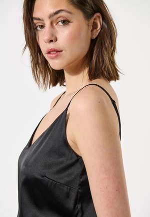 A wardrobe staple from Dea Kudibal. The black silk Octaviedea strap cami has adjustable straps and is half lined. It feels luxurious on your skinwear alone as a top or layer under knitwear and tailoring. - Adjustable spaghetti straps - V-neck line - True to size - Model wears a small - 92% silk, 8% elastane - Hand wash - Supplier style: Octaviedea